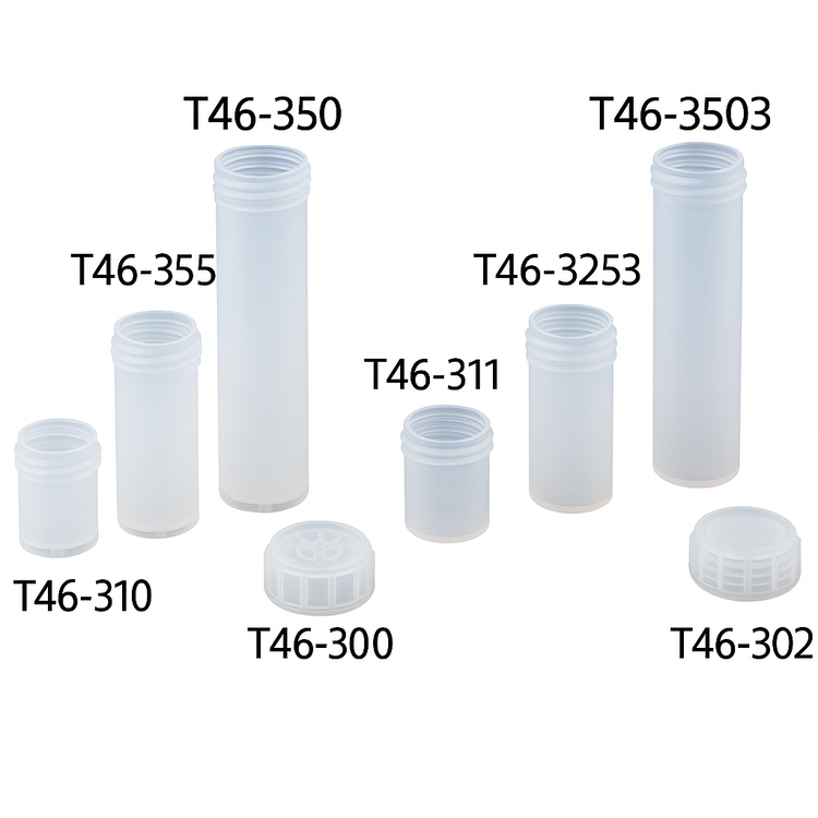 T46-310·325·350은 외부 바닥이 떠있는 형태이고 오토샘플러에 사용 할 수 있으며, T46-311·3253·3503은 외부바닥이 편평하며, 핫 플레이트에 사용할 수 있습니다.