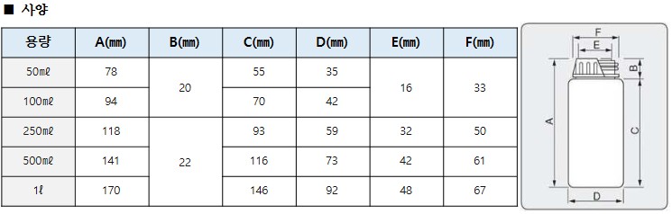 재질: 본체 PE / 캡 PE