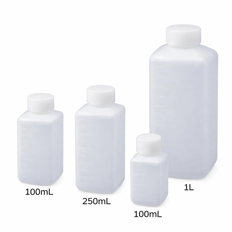 멸균 사각 광구 샘플병 PE 바틀│NIKKO HDPE J Bottle Square Wide Mouth Sterile